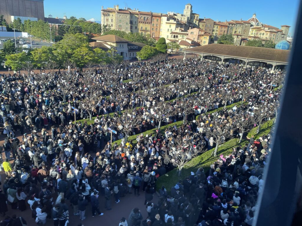 8:25頃、ディズニーリゾートラインで入園ゲート付近を通過した時点で、 すでに想像以上の開園待ちの行列ができていてびっくりしました💦