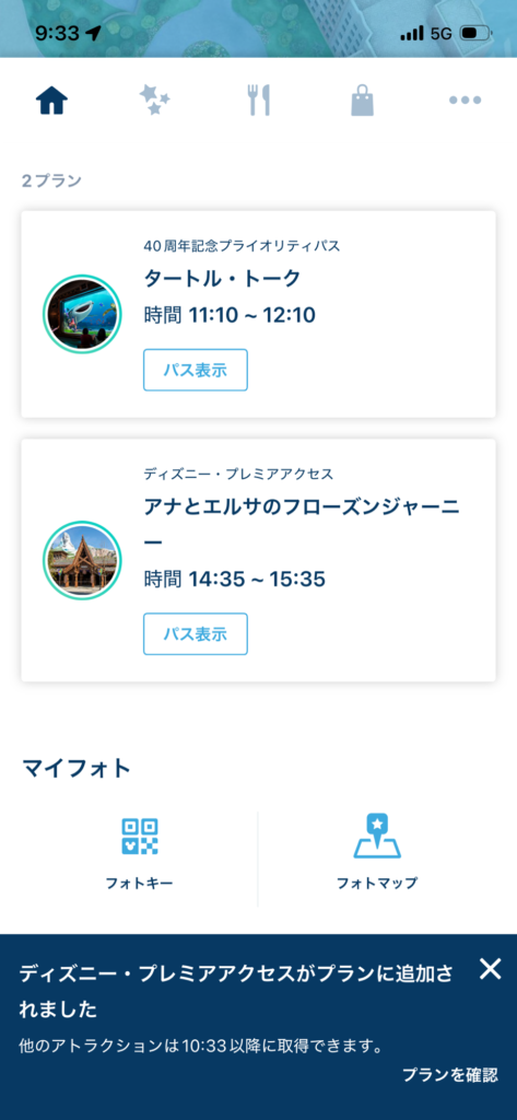 入園した時点では、アナ雪のDPAはほぼ表示されない状態