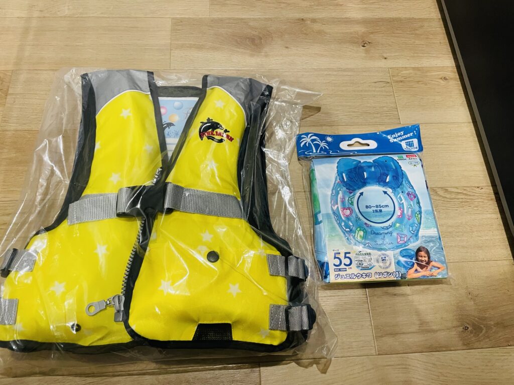 我が家は浮き輪とライフジャケットの両方を持参しましたが、実際に使ったのは浮き輪のみでした。
