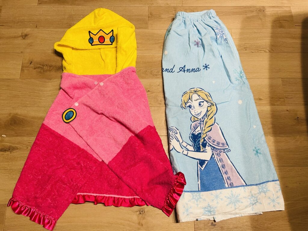 ラップタオルは約80cm丈だったため、身長100cmの娘には少し大きく、引きずってしまう感じでした。