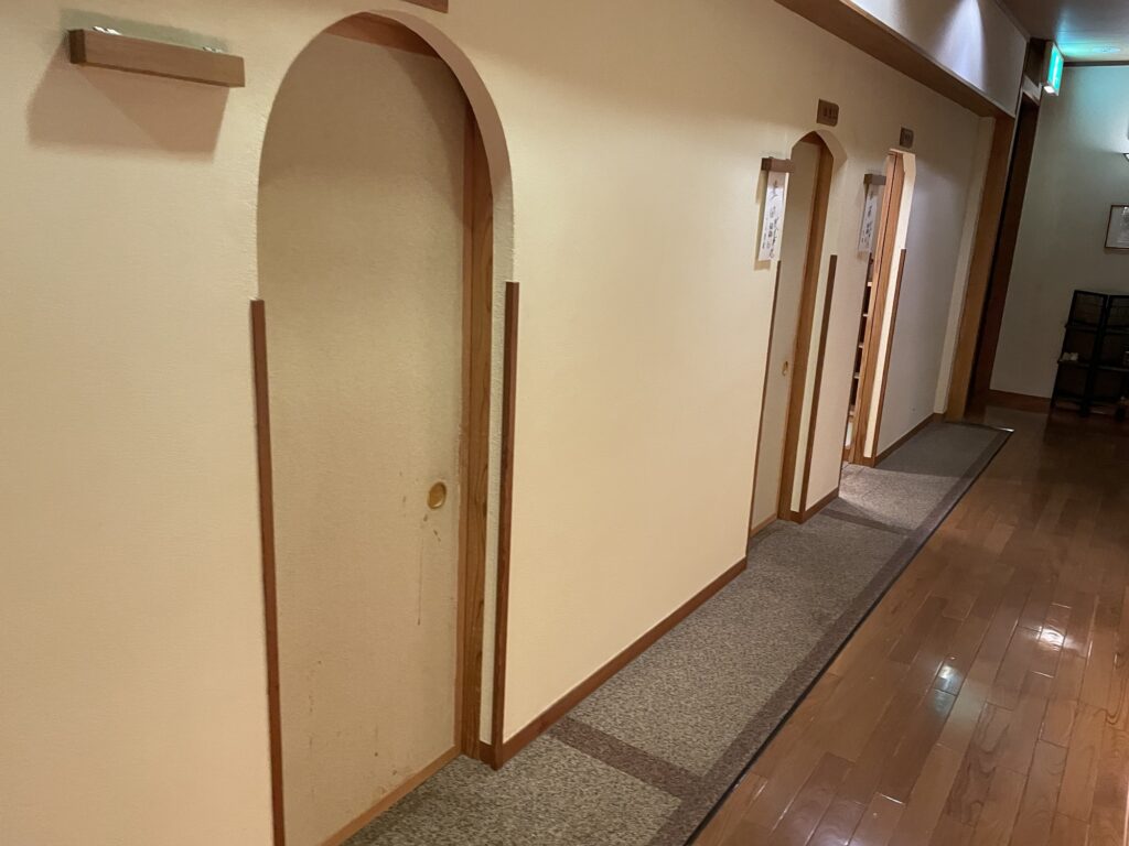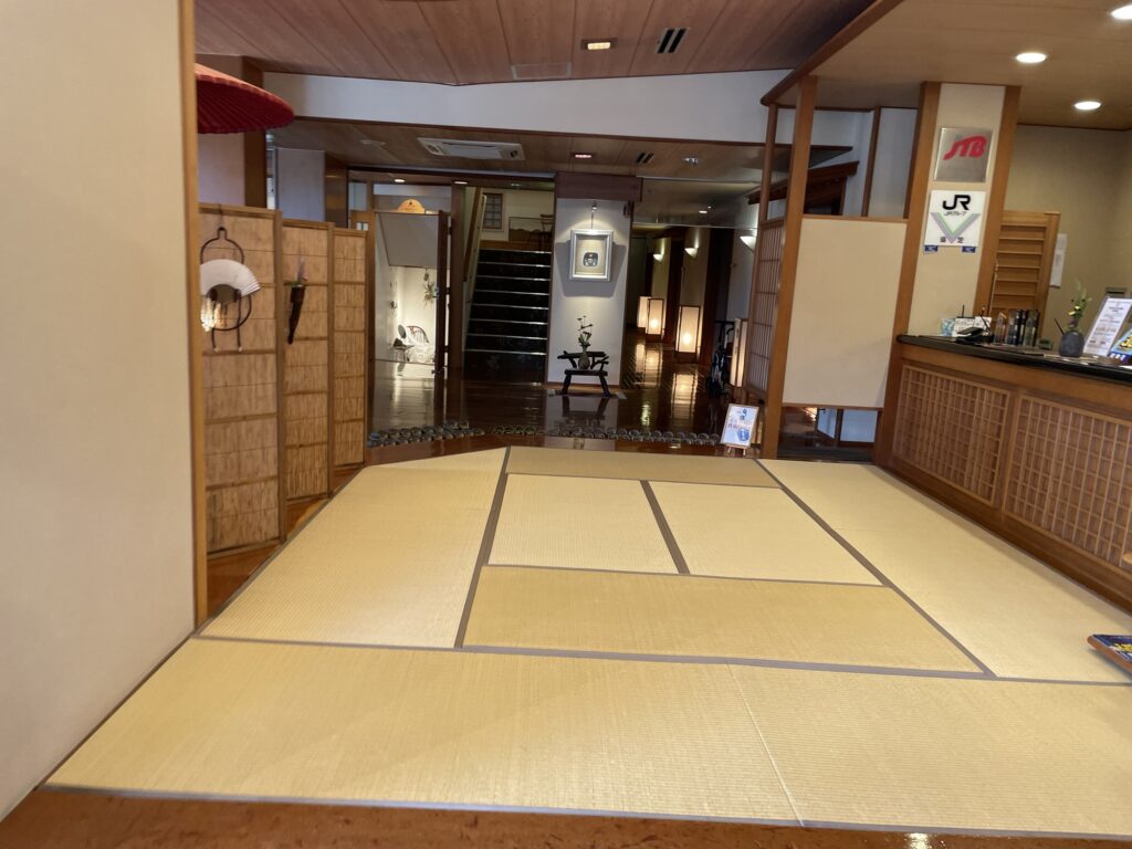 玄関で靴を預け、館内はスリッパで過ごすスタイル。