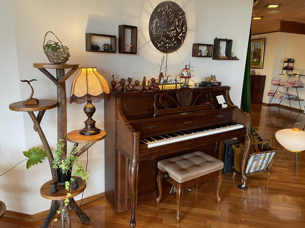 端にはピアノが置かれていて、自動演奏でゆったりとした音楽が流れています🎵