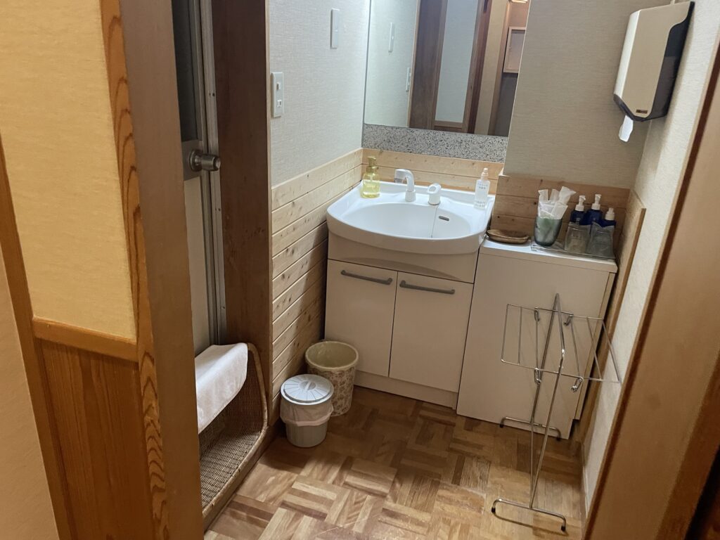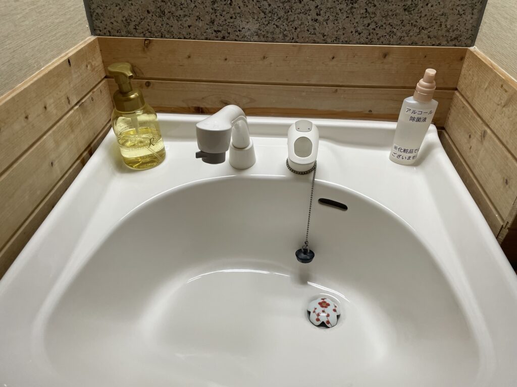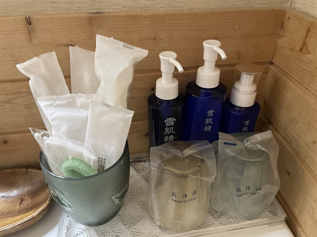 洗面台にはアメニティやスキンケア類が置いてありました。