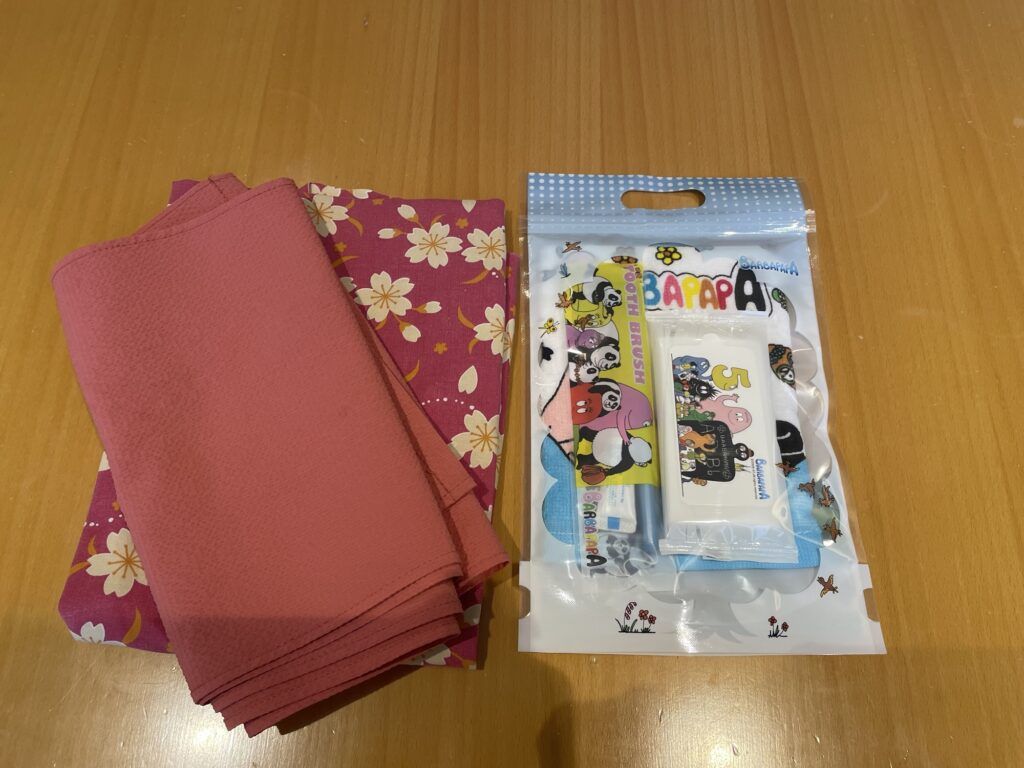 セット内容はタオル・ウェットティッシュ・歯ブラシの3点。