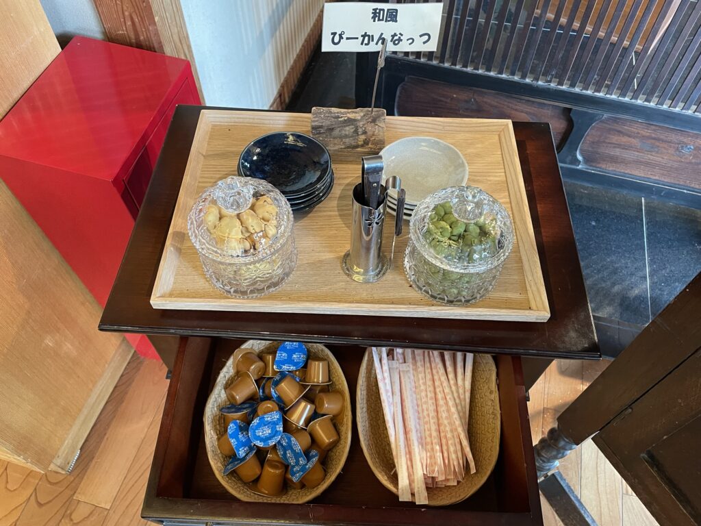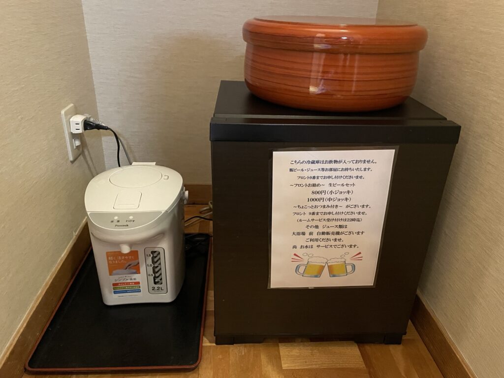 お湯のポットは床に置かれていたので、小さなお子さんがいる場合は少し注意しておくと安心です。