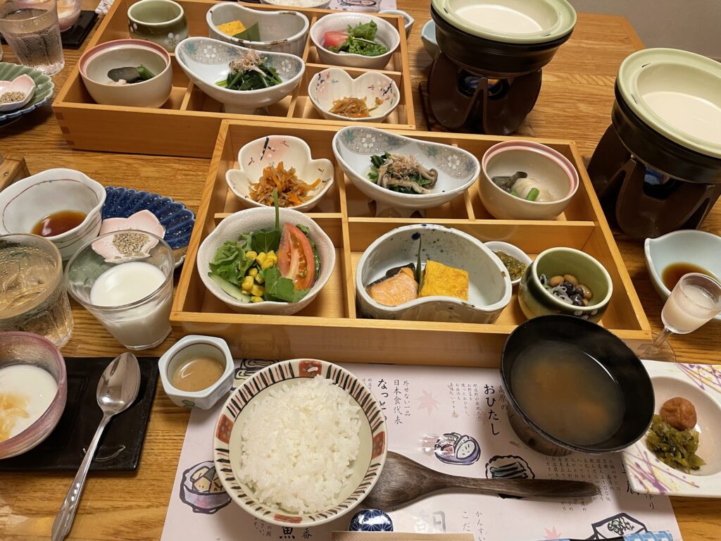 覚楽の食事は、地元食材をふんだんに使った和食中心のメニューでした。