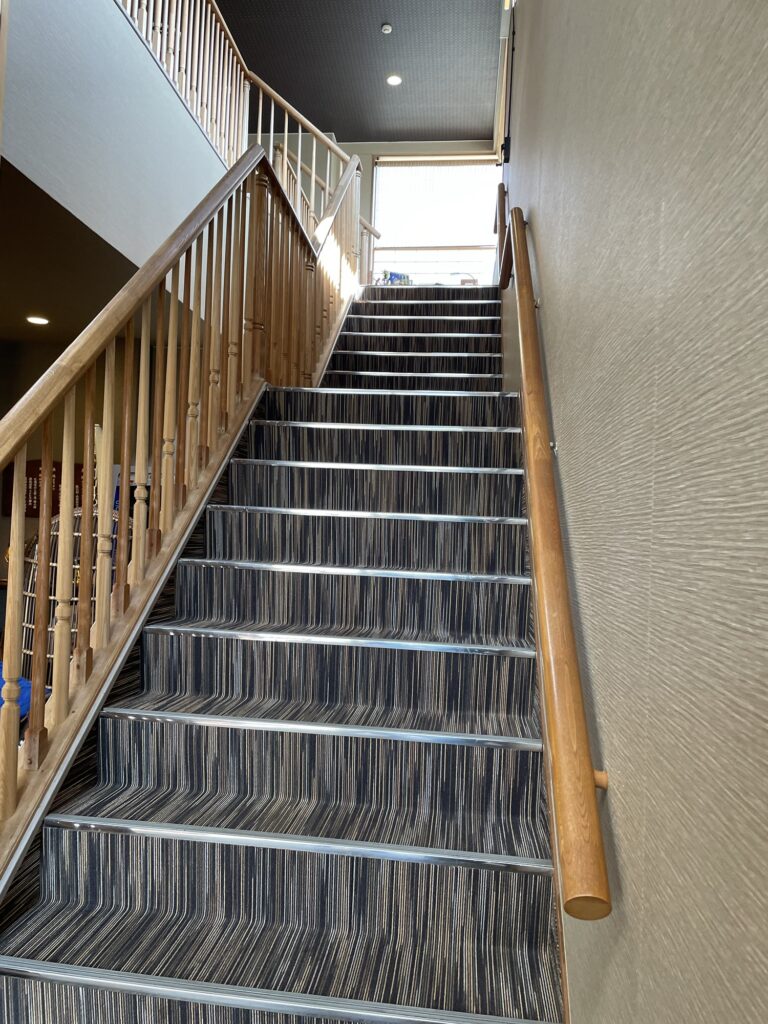 館内の談話室や階段の踊り場にも絵本コーナーがあり、イスが置いてあってその場で読んだり、お部屋に持って帰ってもOK📚