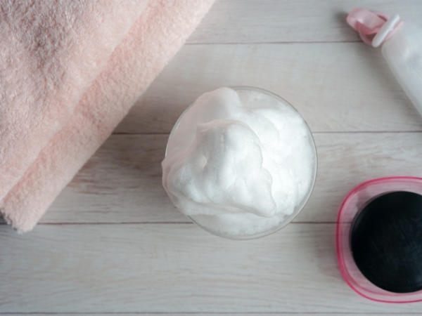 - ジェルが泡になり、さらにクリーム状になるまでやさしくなじませる