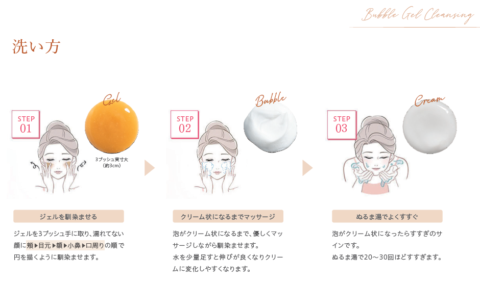 Q1.バブルジェルクレンジングの使い方は?