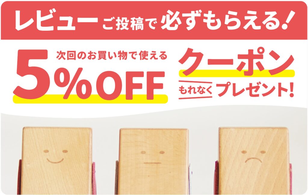 レビュー投稿で5%OFFクーポンがもらえる