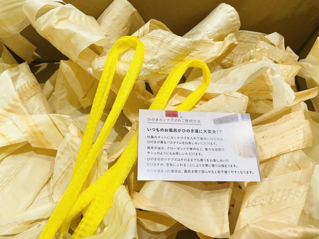 この木くずはお風呂に浮かべてひのき風呂気分を味わったり、靴箱やクローゼットの消臭剤として再利用することも可能♻️