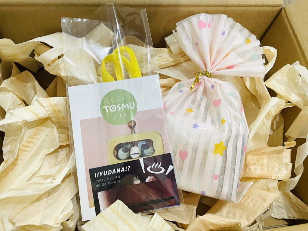 郵送でプレゼントを贈る際に、緩衝材を「ひのきの木くず」にすると香りまで楽しめて、さらに特別感のあるギフトに🎁🌿