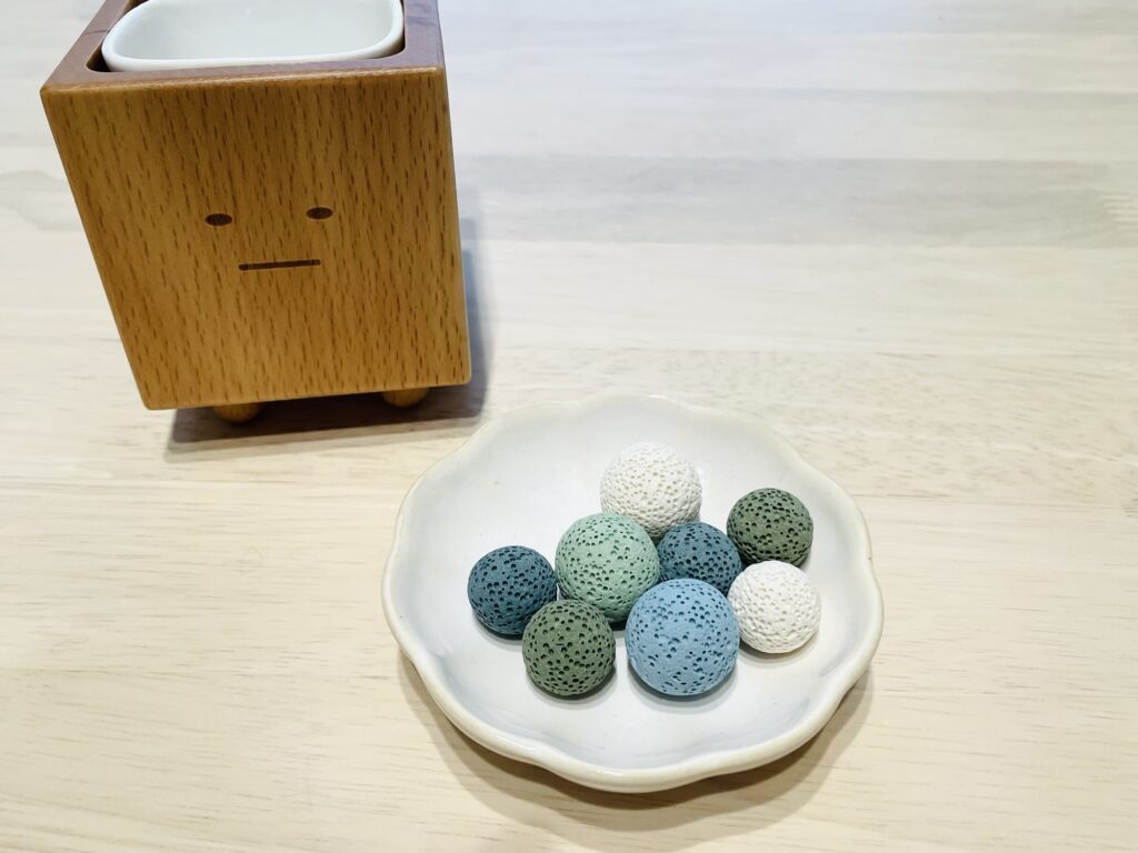 無数の気孔に精油が染み込み、時間をかけてほのかに香りを放ちます。