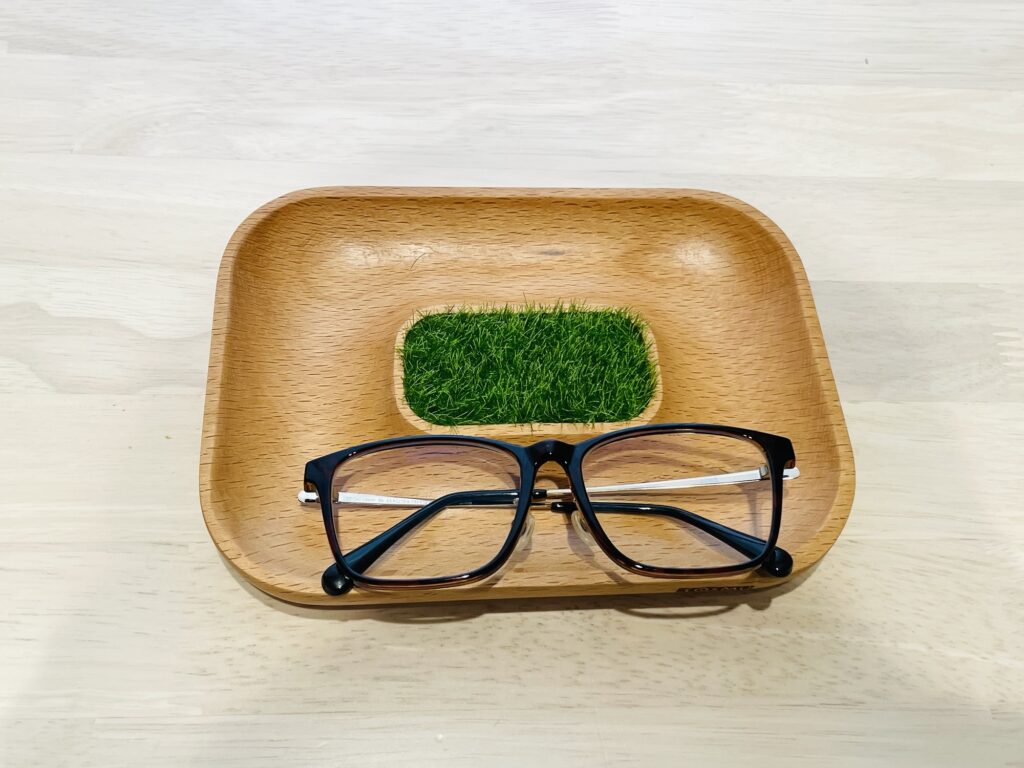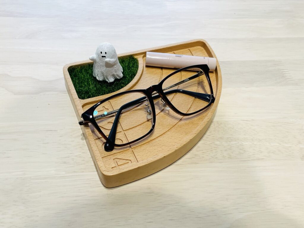 眼鏡を置くには少し小さめですが、鍵やアクセサリーなどの小物置きにちょうどいいサイズ感です。